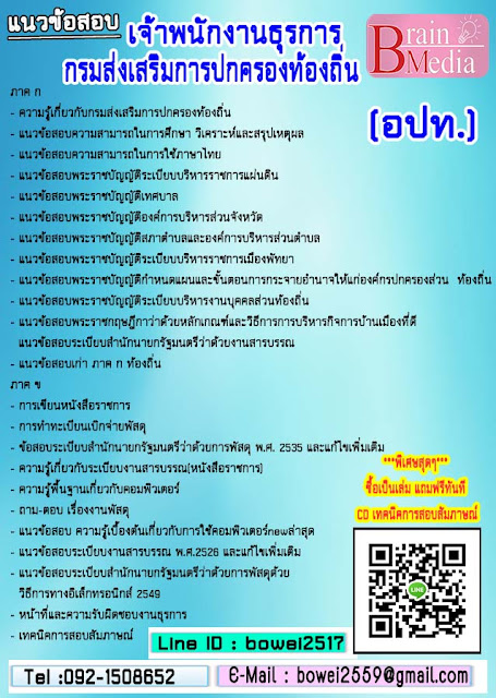 โหลดแนวข้อสอบ เจ้าพนักงานธุรการ กรมส่งเสริมการปกครองท้องถิ่น (อปท.) 2559[/size][/b]