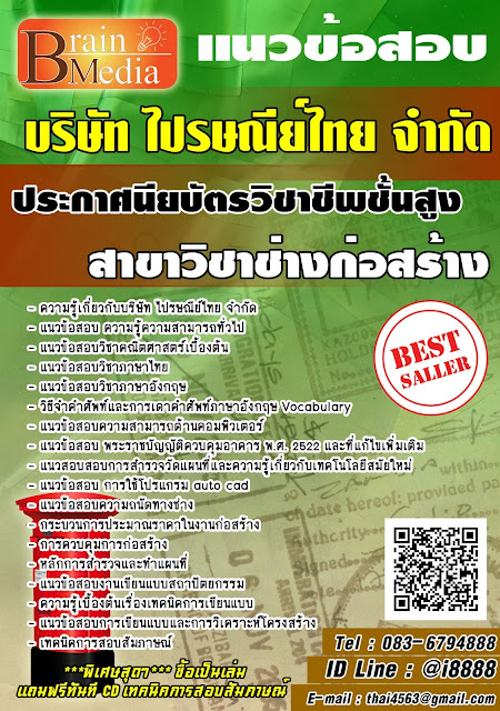 โหลดแนวข้อสอบ ประกาศนียบัตรวิชาชีพชั้นสูง สาขาวิชาช่างก่อสร้าง บริษัท ไปรษณีย์ไทย จำกัด