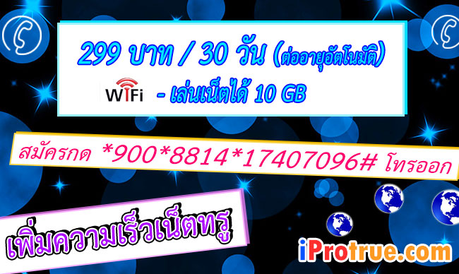 โปรเพิ่มความเร็วเน็ตทรู 299 บาท / 30 วัน (รวมภาษี 319.93 บาท) ต่ออายุอัตโนมัติ