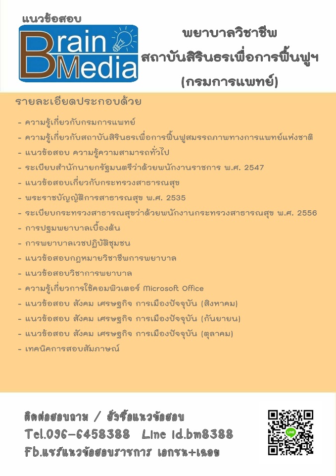 โหลดแนวข้อสอบ พยาบาลวิชาชีพ สถาบันสิรินธรเพื่อการฟื้นฟูสมรรถภาพทางการแพทย์แห่งชาติ (กรมการแพทย์)