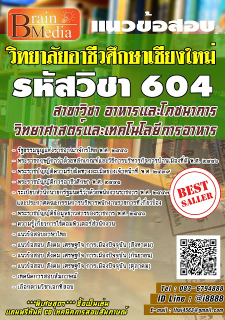โหลดแนวข้อสอบ รหัสวิชา 604 สาขาวิชา อาหารและโภชนาการ/วิทยาศาสตร์และเทคโนโลยีการอาหาร วิทยาลัยอาชีวศึกษาเชียงใหม่