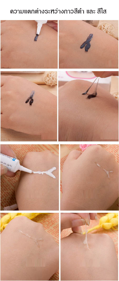 กาวติดขนตาปลอม สีใส สีนี้เหมาะสำหรับสาวๆ มือใหม่ ที่ยังไม่มีความชำนาญ หรือเพิ่งเริมหัดติดขนตาปลอม