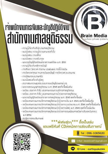 [/url] - ความรู้เกี่ยวกับสำนักงานศาลยุติธรรม- แนวข้อสอบ ความรู้ความสามารถทั่วไป - แนวข้อสอบ ภาษาไทย- แนวข้อสอบ ภาษาอังกฤษ- พระราชบัญญัติระเบียบข้าราชการพลเรือน พ.ศ. 2551- ความรู้เกี่ยวกับหลักการบัญชี- การศึกษา วิเคราะห์ ติดตาม ประเมินผล การใช้จ่ายเงิน- การวิเคราะห์ฐานะ ทางการเงินและบัญชี การวิเคราะห์งบประมาณ- การพัฒนาระบบงานคลัง- แนวข้อสอบเกี่ยวกับพัสดุ- ตรวจสอบความถูกต้องของการลงบัญชีประเภทต่างๆ- พระราชธรรมนูญศาลยุติธรรม พ.ศ. 2543 และที่แก้ไขเพิ่มเติม- พระราชบัญญัติระเบียบข้าราชการศาลยุติธรรม พ.ศ. 2543 และที่แก้ไขเพิ่ม- ระเบียบคณะกรรมการบริหารศาลยุติธรรมว่าด้วยการเงิน พ.ศ. 2545 และที่แก้ไขเพิ่มเติม- ระเบียบคณะกรรมการบริหารศาลยุติธรรมว่าด้วยการงบประมาณ พ.ศ. 2544 และที่แก้ไขเพิ่มเติม- ระเบียบคณะกรรมการบริหารศาลยุติธรรมว่าด้วยการพัสดุ พ.ศ. 2545 และที่แก้ไขเพิ่มเติม- ระเบียบคณะกรรมการบริหารศาลยุติธรรมว่าด้วยค่าธรรมเนียมศาลเงินค่าปรับและเงินกลาง พ.ศ.2556- ระเบียบ ประกาศ คำสั่ง ของคณะกรรมการบริหารศาลยุติธรรม- ระเบียบ ประกาศ คำสั่ง ของคณะกรรมการข้าราชการศาลยุติธรรม- เทคนิคการสอบสัมภาษณ์***พิเศษสุดๆ*** ชื้อเป็นเล่ม แถบฟรีทันที CD เทคนิคการสอบสัมภาษณ์[/b]