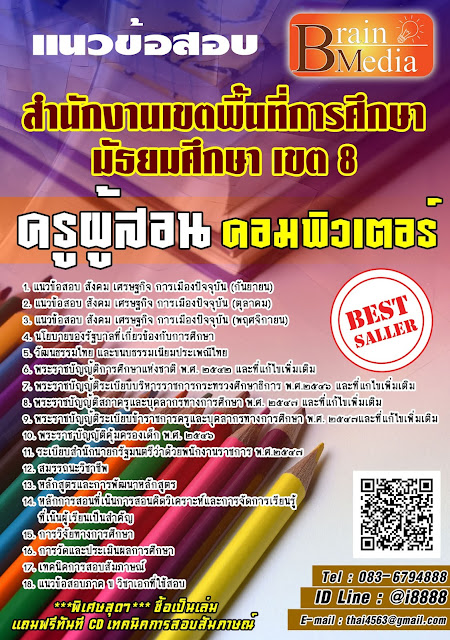 โหลดแนวข้อสอบ ครูผู้สอน คอมพิวเตอร์ สำนักงานเขตพื้นที่การศึกษามัธยมศึกษา เขต 8