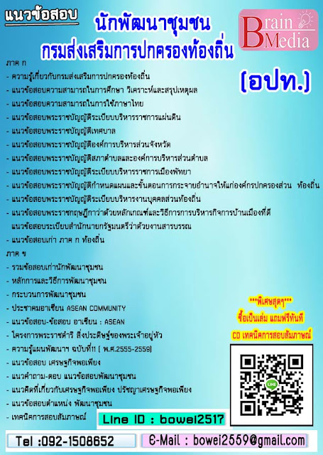 Tags : แนวข้อสอบ  นักพัฒนาชุมชน กรมส่งเสริมการปกครองท้องถิ่น (อปท.) 2559