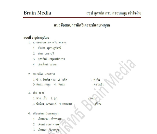 6. แนวข้อสอบการคิดวิเคราะห์ด้านเหตุผล  อุปมาอุปไมย ชุดที่ 1 จำนวน 41 ข้อ