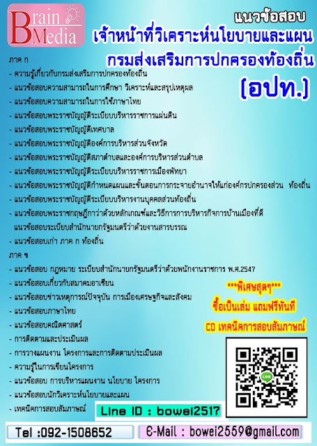 โหลดแนวข้อสอบ เจ้าหน้าที่วิเคราะห์นโยบายและแผน กรมส่งเสริมการปกครองท้องถิ่น (อปท.) 2559[/size][/b]