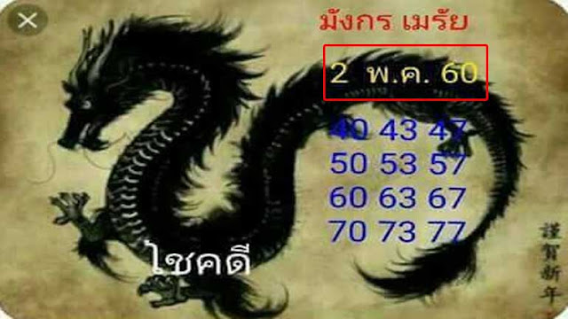 ประเดิม! หวยมังกรเมรัย งวด 2/5/60 เข้าต่อเนื่องของจริง