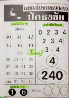เลขเด็ดผลงานดี สถิติหวย 2 งวดซ้อน! หวยซองปักธงชัย งวดวันที่ 02/05/60