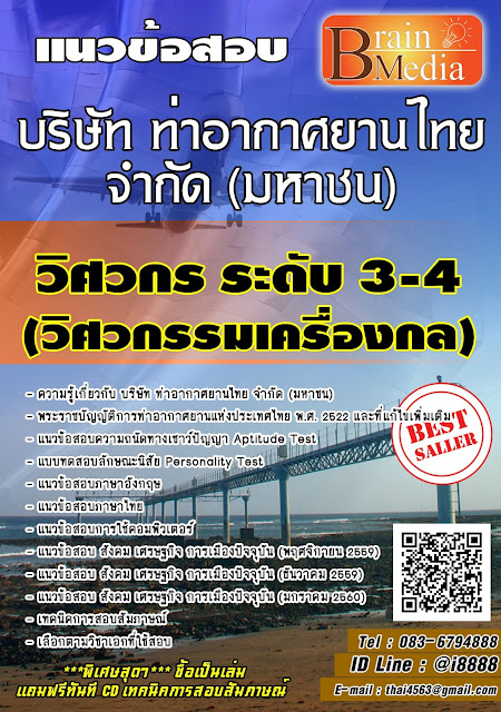 โหลดแนวข้อสอบ วิศวกร ระดับ 3-4 (วิศวกรรมเครื่องกล) บริษัท ท่าอากาศยานไทย จำกัด (มหาชน)