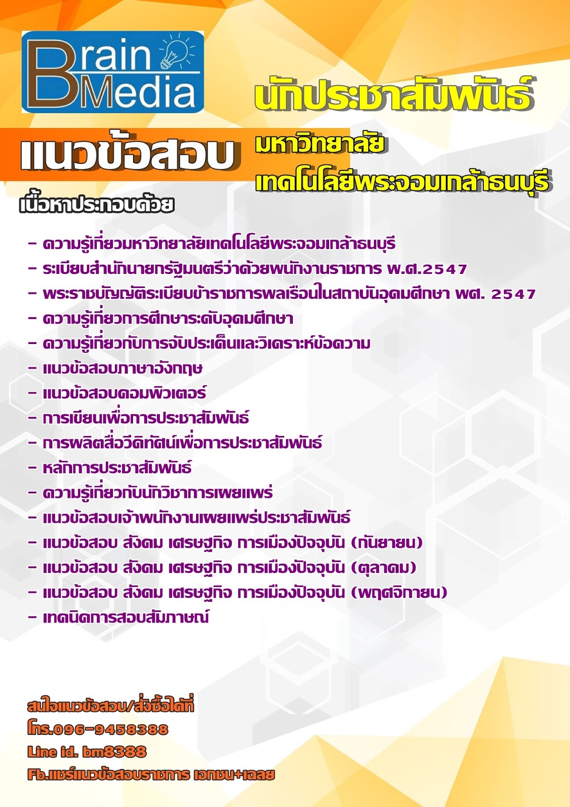 โหลดแนวข้อสอบ นักประชาสัมพันธ์ มหาวิทยาลัยเทคโนโลยีพระจอมเกล้าธนบุรี
