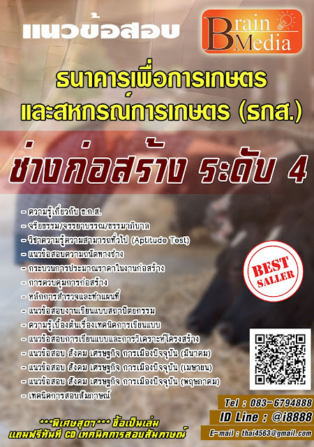 Tags : จำหน่ายแนวข้อสอบ ช่างก่อสร้าง ระดับ 4 ธนาคารเพื่อการเกษตรและสหกรณ์การเกษตร (ธกส.) ทุกตำแหน่ง