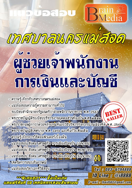 Tags : คู่มือเตรียมสอบผู้ช่วยเจ้าพนักงานการเงินและบัญชี เทศบาลนครแม่สอด ทุกตำแหน่ง,แนวข้อสอบ ผู้ช่วยเจ้าพนักงานธุรการ เทศบาลนครแม่สอด ทุกตำแหน่ง