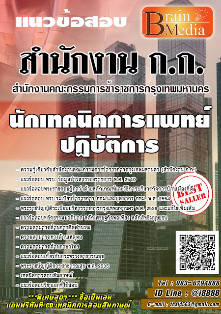 โหลดแนวข้อสอบ นักเทคนิคการแพทย์ปฏิบัติการ สำนักงานคณะกรรมการข้าราชการกรุงเทพมหานคร (สำนักงาน ก.ก.)
