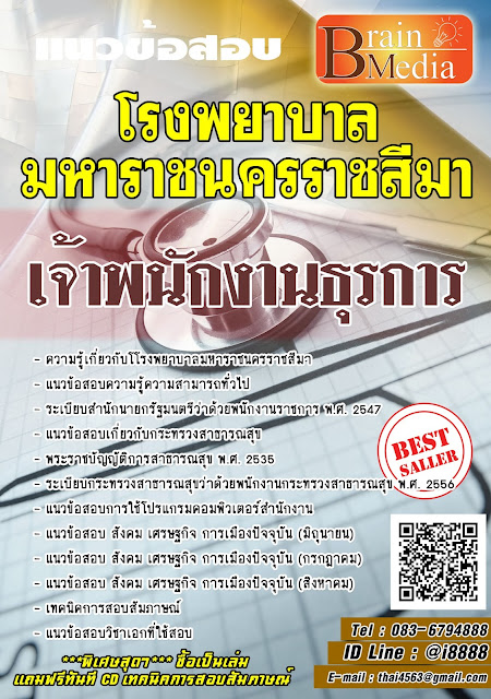จำหน่ายแนวข้อสอบเจ้าพนักงานธุรการ โรงพยาบาลมหาราชนครราชสีมา ทุกตำแหน่ง