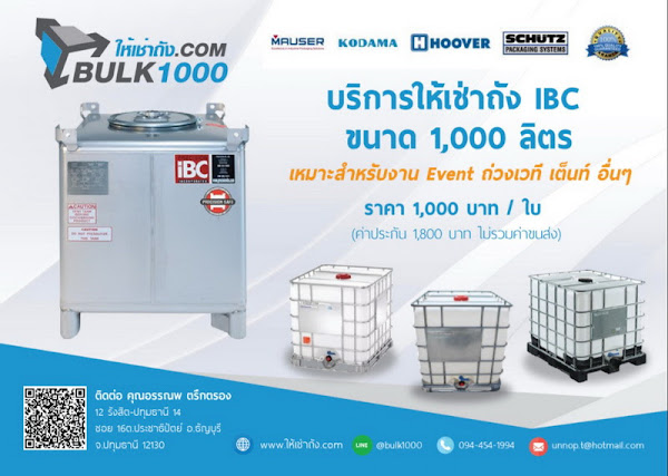 ผู้เขียน หัวข้อ: ถัง IBC ขนาด 1,000 ลิตร ให้เช่า  (อ่าน 40 ครั้ง)