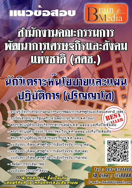 โหลดแนวข้อสอบ นักวิเคราะห์นโยบายและแผนปฏิบัติการ (ปริญญาโท) สำนักงานคณะกรรมการพัฒนาการเศรษฐกิจและสังคมแห่งชาติ (สศช.)