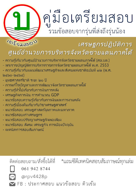 โหลดแนวข้อสอบ เศรษฐกรปฏิบัติการ ศูนย์อำนวยการบริหารจังหวัดชายแดนภาคใต้ (ศอ.บต.)[/b]