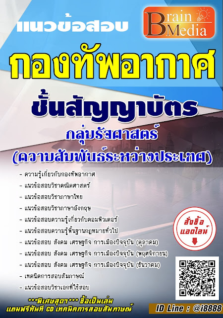 คู่มือเตรียมสอบชั้นสัญญาบัตร กลุ่มรัฐศาสตร์ (ความสัมพันธ์ระหว่างประเทศ) กองทัพอากาศTags : จำหน่ายแนวข้อสอบ ชั้นสัญญาบัตร กลุ่มรัฐศาสตร์ (ความสัมพันธ์ระหว่างประเทศ) กองทัพอากาศ