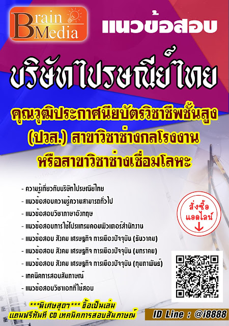โหลดแนวข้อสอบ คุณวุฒิประกาศนียบัตรวิชาชีพชันสูง (ปวส.) สาขาวิชาช่างกลโรงงานหรือสาขาวิชาช่างเชื่อมโลหะ บริษัทไปรษณีย์ไทย