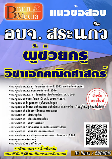 โหลดแนวข้อสอบ ผู้ช่วยครู วิชาเอกคณิตศาสตร์ องค์การบริหารส่วนจังหวัดสระแก้ว