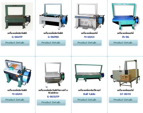เครื่องปิดกล่องต่อเชื่อมกับเครื่องรัดกล่องอัตโนมัติ, เครื่องรัดกล่องอัตโนมัติ, เครื่องรัดกล่องกึ่งอัตโนมัติ, เครื่องขึ้นรูปกล่อง, เครื่องปิดผนึกสูญญากาศ, เครื่องปิดฉลากความเร็วสูง, เครื่องบรรจุอัตโนมัติแนวตั้ง, เครื่องบรรจุอัตโนมัติแนวนอน, เครื่องพันพาเลทด้วยฟิล์มยืด, เครื่องรีดแนวตั้ง Servo System Auger Filling Machine, เครื่องห่อฟิล์มอัตโนมัติต่อเชื่อมกับเครื่องอบฟิล์มหด, เครื่องรัดสายรัดออโต้ และกึ่งออโต้, เครื่องแพ็คสูญญากาศ , เครื่องปิดกล่อง , เครื่องอบฟิล์ม, เครื่องบรรจุและห่อแนวนอน, เครื่องบรรจุและห่อแนวตั้ง, เครื่องรีดซีลปากถุง, เครื่องพันพาเลท, เครื่องพิมพ์วันที่, เครื่องรัดเหล็กพืด, สายรัดกล่องแบบพิมพ์ลาย และไม่พิมพ์ลาย และรับผลิตตาม Order ลูกค้า ผู้ผลิต-นำเข้า และส่งออก เครื่องบรรจุหีบห่อทุกชนิด พร้อมให้บริการมานานกว่า 10 ปี ซึ่งเราไม่เคยหยุดการพัฒนา ทั้งทางด้านผลิตภัณฑ์และการบริการ เพื่อให้ลูกค้าเกิดความพึงพอใจ