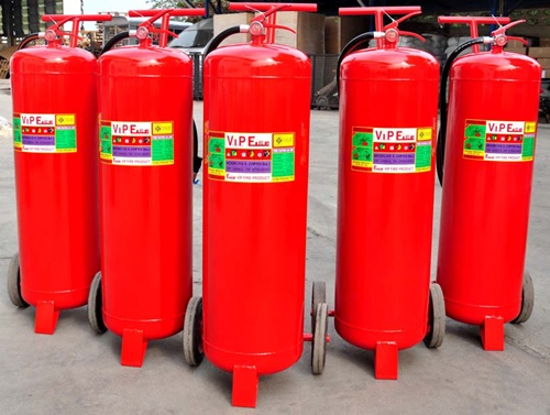 ถังดับเพลิงชนิดผงเคมีแห้งบรรจุในถังสีแดง เป็นที่นิยมใช้กันมาก ภายในบรรจุผงเคมีแห้งและก๊าซไนโตรเจน น้ำยาที่ฉีดออกมาจะเป็นฝุ่นละอองสามารถดับเพลิงไหม้ทุกชนิด ได้อย่างรวดเร็ว และมีประสิทธิภาพสูง