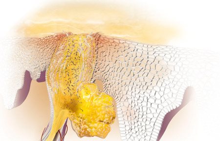 โรคผื่นผิวหนังอักเสบ (Seborrheic Dermatitis)2. Hyperkeratosisคือ การที่ผิวหนังชั้นนอกสุด (Stratum corneum) เกิดการหนาตัวขึ้นผิดปกติ เนื่องจากเกิดการผลัดเซลล์ผิวที่ตายแล้วผิดปกติ ทำให้เกิดการอุดตันท่อต่อมไขมัน และส่งผลรบกวนการไหลของน้ำมันออกมานอกผิวหนัง