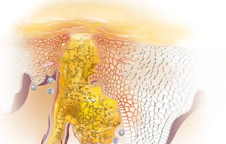 4. Inflammation คือกระบวนการอักเสบของร่างกาย ทำให้เกิดสิวบวมแดงและอักเสบขึ้น ในกรณีที่เป็น Severe acne การอักเสบจะขยายและลึกลงไปในบริเวณเนื้อเยื่อที่อยู่ใกล้เคียงมากขึ้น