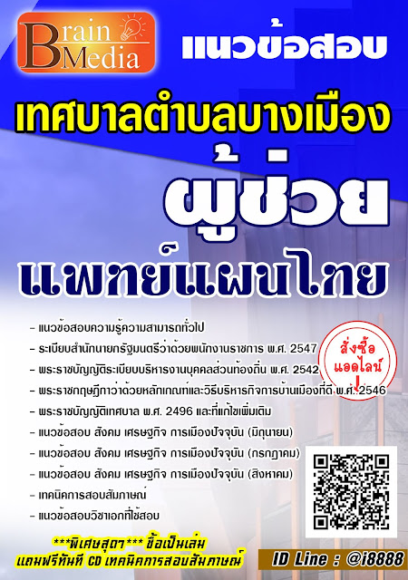 โหลดแนวข้อสอบ ผู้ช่วยแพทย์แผนไทย เทศบาลตำบลบางเมือง