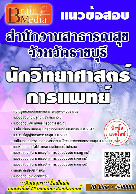 โหลดแนวข้อสอบ นักวิทยาศาสตร์การแพทย์ สำนักงานสาธารณสุขจังหวัดราชบุรี