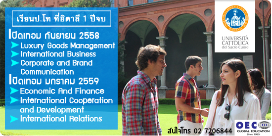 อยากไปเรียนปริญญาโท บริหารธุรกิจที่อิตาลี อันดับ 1 ในการจัดหางานให้กับนักศึกษา เมื่อจบการศึกษาแล้ว นักศึกษา เฉลี่ยประมาณ 87% มีงานทำภายใน 6 เดือนหลังเรียนจบ และ University Cattolica ยังเป็นสถาบันอันดับ 1 ในการจัดหางานให้กับนักศึกษา อยากไปเรียน เรียน แพทย์ศาสตร์ อิตาลี หรือ อยากไเรียน ปริญญา ตรี บริหาร ที่อิตาลี 3 ปีจบ