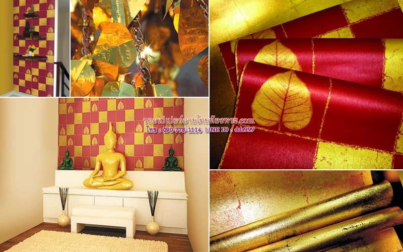 ติดวอลเปเปอร์ลายไทยห้องพระ วอลเปเปอร์ลายต้นโพธิ์ ใบโพธิ์ ราคาถูก