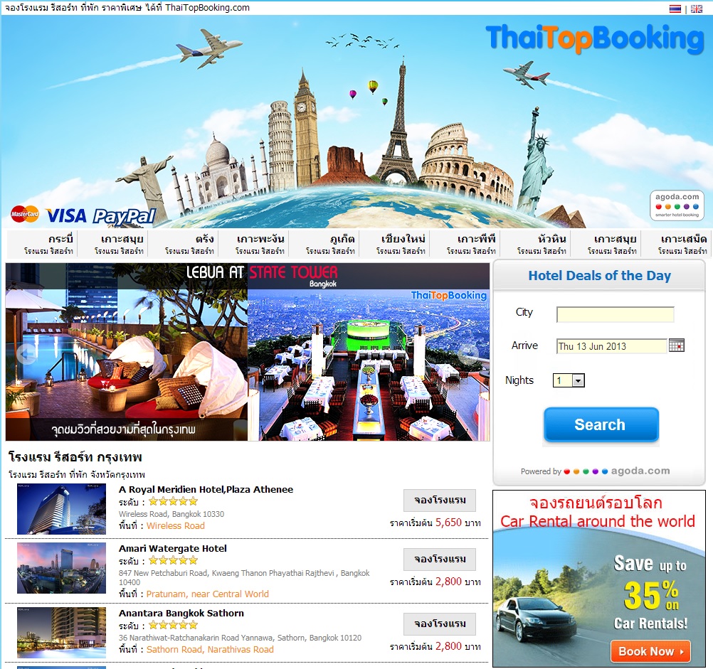 จองโรงแรม/ตั่วเครื่องบิน/รถเช่า/รถทัวร์/ทัวร์ ทั่วโลก