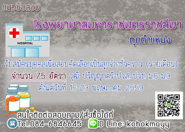 โรงพยาบาลมหาราชนครราชสีมา (Maharat Nakhon Ratchasima Hospital) รับสมัครบุคคลเพื่อสอบคัดเลือกเป็นลูกจ้างชั่วคราว (รายเดือน) จำนวน 75 อัตรา วุฒิ ปริญญาตรี-ปวส.-ปวช.-ม.6-ม.3 สมัครได้ด้วยตนเอง ตั้งแต่วันที่ 16-23 พฤษภาคม 2559 ในวันและเวลาราชการ[/b]