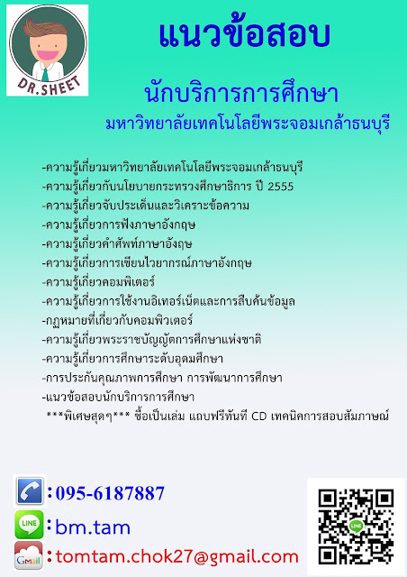 แนวข้อสอบนักบริการการศึกษา มหาวิทยาลัยเทคโนโลยีพระจอมเกล้าธนบุรี
