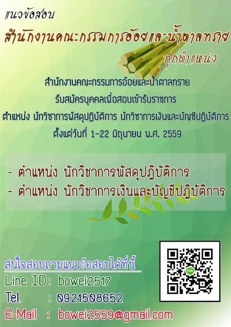 โหลดแนวข้อสอบ นักวิชาการพัสดุปฏิบัติการ สำนักงานคณะกรรมการอ้อยและน้ำตาลทราย