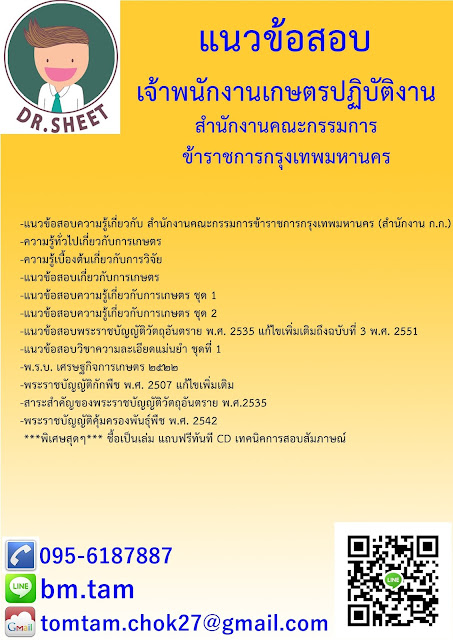 แนวข้อสอบเจ้าพนักงานเกษตรปฏิบัติงาน สํานักงานคณะกรรมการข้าราชการกรุงเทพมหานคร (สํานักงาน ก.ก.)
