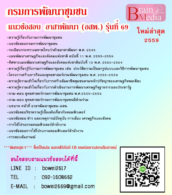 แนวข้อสอบ อาสาพัฒนา (อสพ.) รุ่นที่ 69 กรมการพัฒนาชุมชน