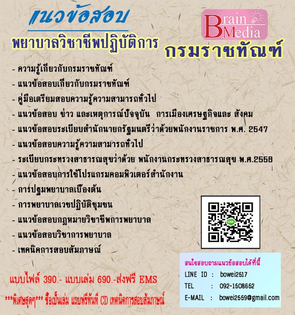 โหลดแนวข้อสอบ พยาบาลวิชาชีพปฏิบัติการ กรมราชทัณฑ์