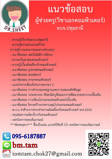 แนวข้อสอบผู้ช่วยครู (วิชาเอกคอมพิวเตอร์) อบจ.ปทุมธานี