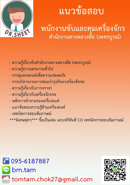 แนวข้อสอบพนักงานขับและคุมเครื่องจักร สำนักงานทางหลวงที่6 (เพชรบูรณ์)