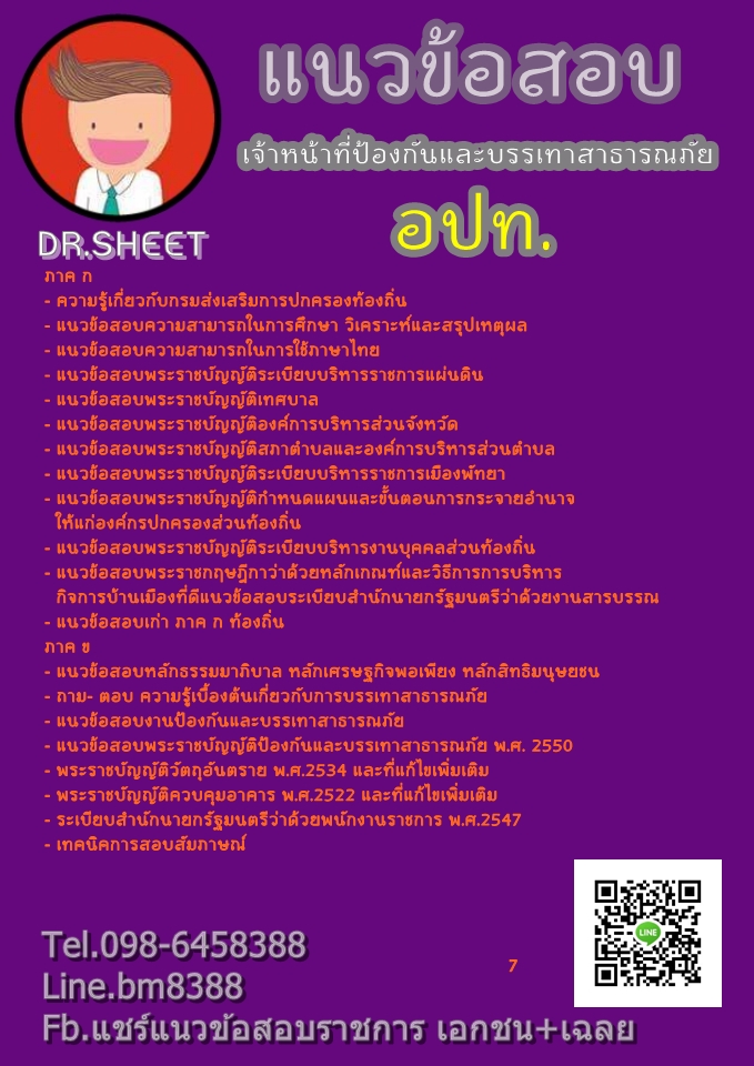 ติดต่อสอบถาม / สั่งซื้อแนวข้อสอบTel .096-6458388Line id. bm8388E mail. thitima.wijanjak@gmail.com
