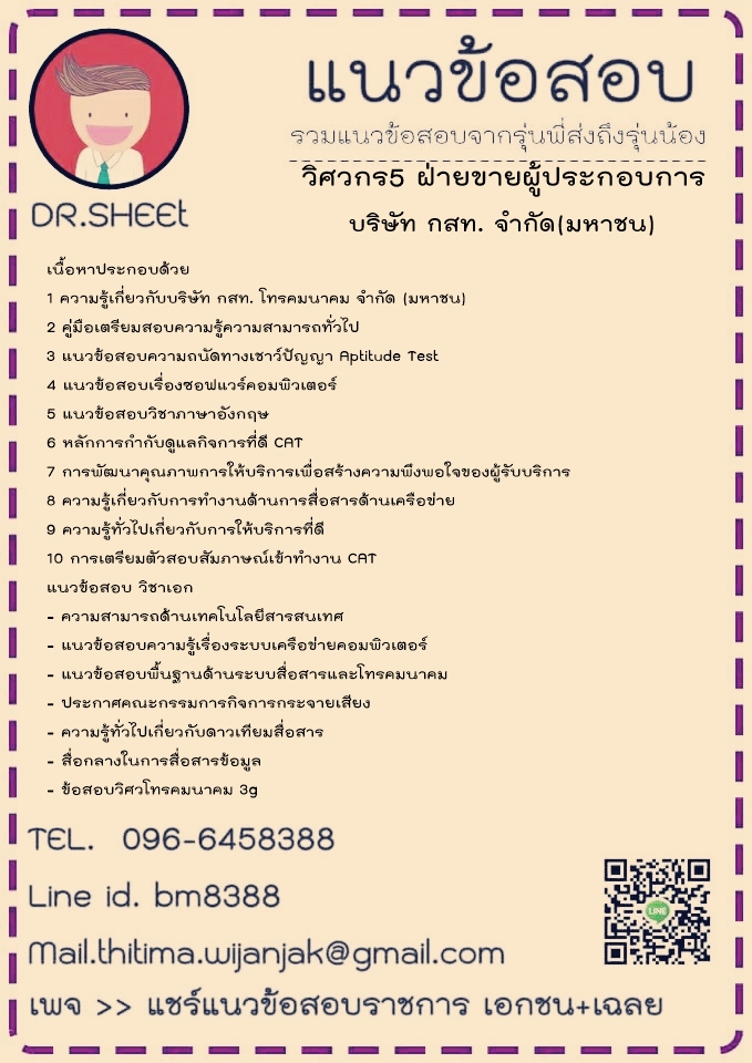 โหลดแนวข้อสอบ วิศวกร5 ฝ่ายขายผู้ประกอบการ บริษัท กสท. โทรคมนาคม จำกัด (มหาชน) CAT