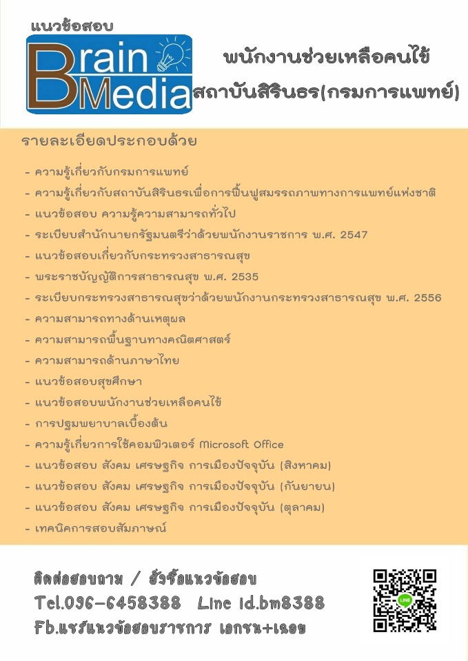 โหลดแนวข้อสอบ พนักงานช่วยเหลือคนไข้ สถาบันสิรินธรเพื่อการฟื้นฟูสมรรถภาพทางการแพทย์แห่งชาติ (กรมการแพทย์)