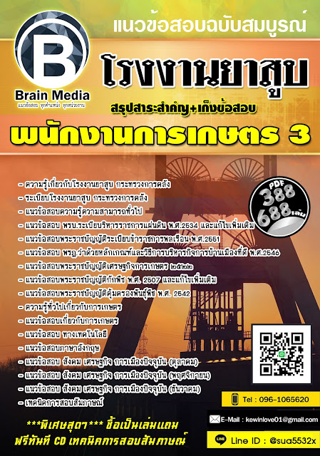 ผู้เขียน | หัวข้อ: Brain Media คู่มือแนวข้อสอบพนักงานการเกษตร 3 โรงงานยาสูบ กระทรวงการคลัง (อ่าน 68 ครั้ง) |
