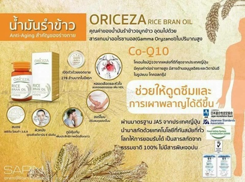 Oriceza ออร์ไรซ์ซ่าสินค้าเสริมอาหารน้ำมันรำข้าว ผสม Coenzyme Q10 จากญี่ปุ่น สนับ