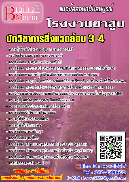 โหลดแนวข้อสอบ นักวิชาการสิ่งแวดล้อม 3-4 โรงงานยาสูบ