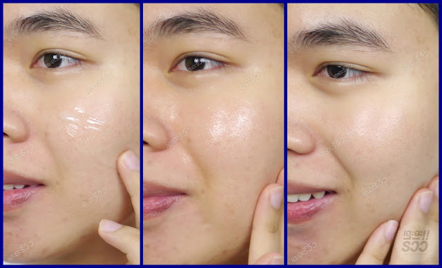 พอเริ่มเกลี่ยจะรู้สึกเหมือนค่อนข้างจะหนึบๆผิว พอลูบไล้ไปประมาณ 30 วิ
