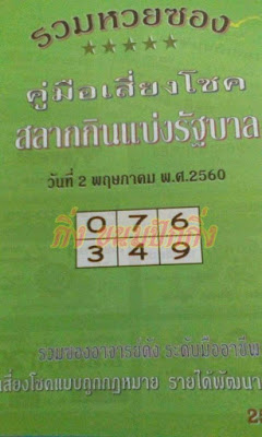 หวยซองคู่มือเสี่ยงโชคสลากกินแบ่งรัฐบาล งวดวันที่ 2/05/60